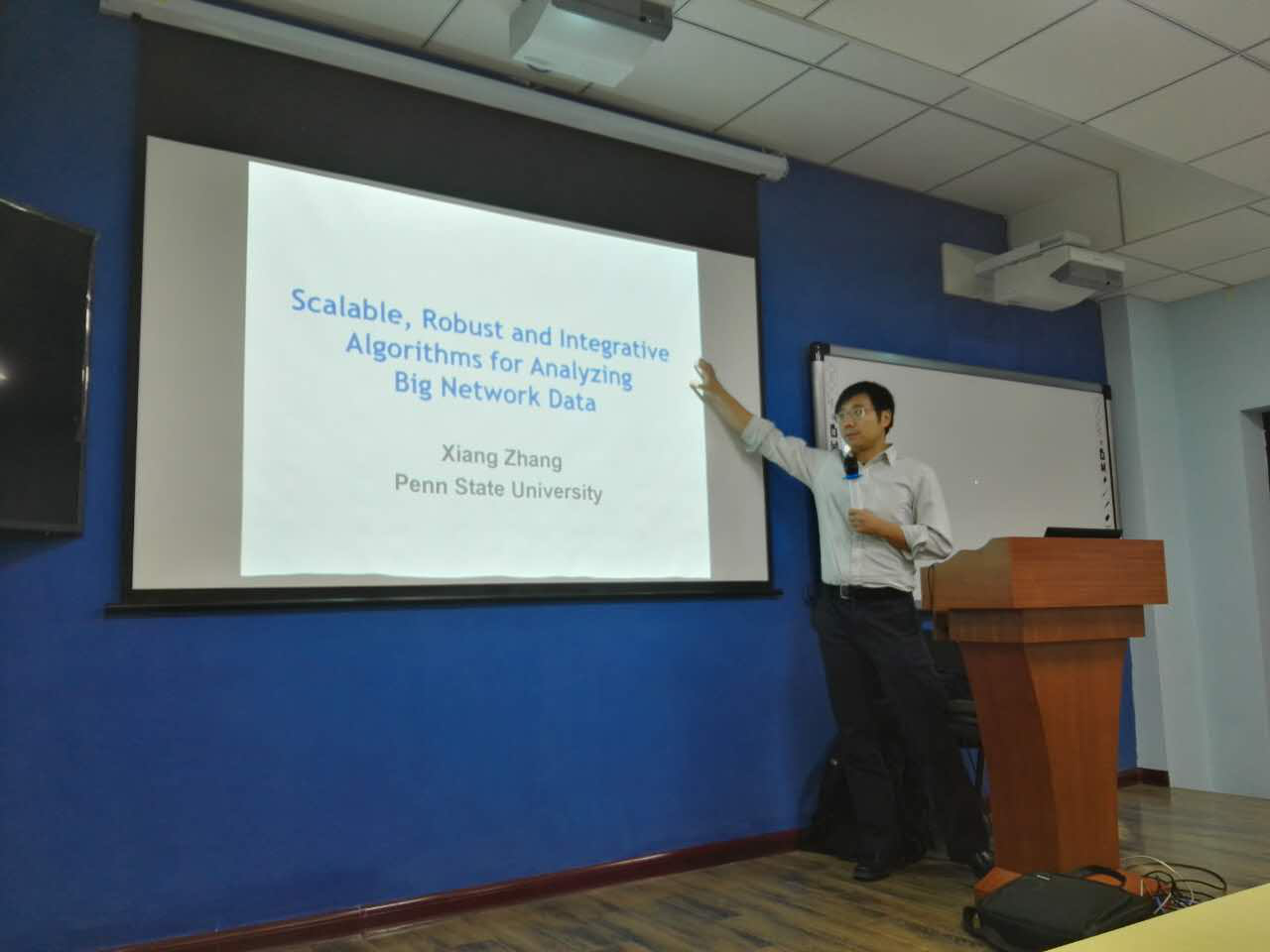 12月2日下午,应我校jinnianhui金年会登录入口管理科学系陈俊霖副教授的邀请,美国宾西法尼亚州立大学信息科学和技术学院张翔副教授来到我校,在学院南路校区主教309作了“Scalable, Robust and Integrative Algorithms for Analyzing Big Network Data”专题讲座。