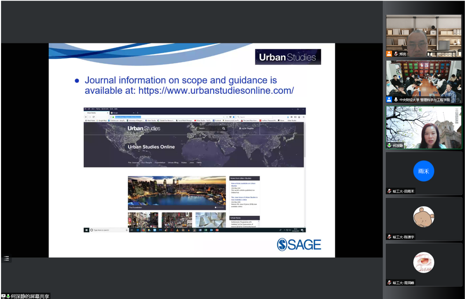 2021年11月23日19:30-21:30,金年会官网邀请到香港大学城市规划及设计系系主任何深静教授开展主题为“中国城市研究转型与理论化及Urban Studies期刊发表要求”讲座。受疫情影响,本次讲座采取线上线下结合的形式。何教授是英国社会科学院院士,先后担任亚太住房研究网络(APNHR)主席、美国地理学家协会(AAG)中国组主席、国际地理联合会(IGU)城市地理委员会指导委员、中国城市研究网络(UCRN)指导委员、国际中国城市规划学会(IACP)指导委员、中国地理学会城市地理专业委员会秘书长等工作,并且是促进公平与福祉的社会基础设施实验室(Social Infrastructure for Equity and Wellbeing Lab)主任。