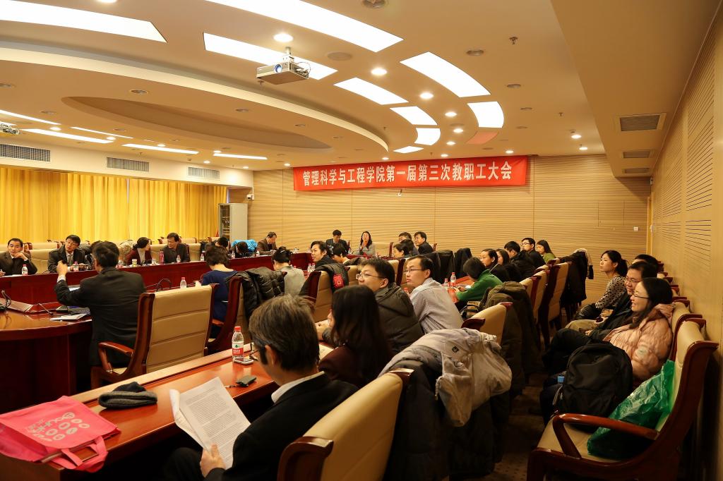 20131222日jinnianhui金年会登录入口在学术会堂604召开第一届第三次教职工大会。大会由教职工大会执委会主任、党总支书记贺小海主持,副校长王瑶琪以及学院全体教职工出席会议。