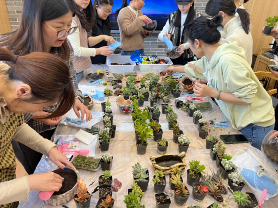 为庆祝“三八”国际劳动妇女节,丰富金年会官网女教工的文化生活,3月8日,jinnianhui金年会登录入口分工会举办了多肉微景观制作活动,二十位老师欢聚一堂,在活动中放松心情、陶冶情操,用绿色点缀生活。