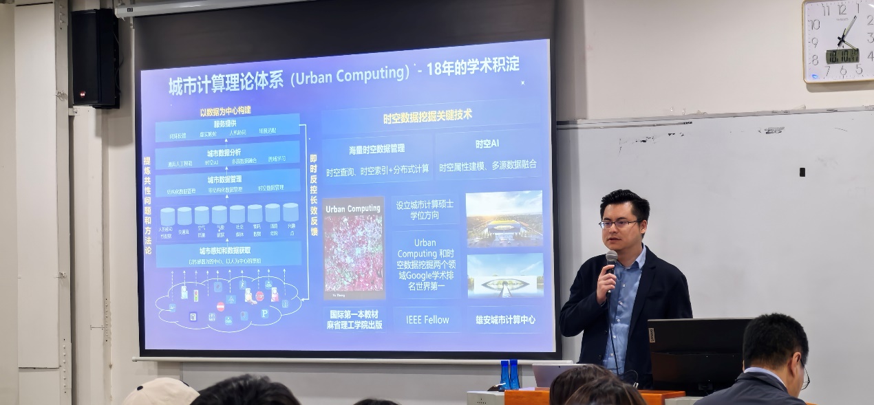 10月10日下午,jinnianhui金年会登录入口在沙河校区学院楼6号楼106教室举办高端学术论坛,邀请了京东集团副总裁郑宇教授作了题为《城市计算:释放城市数据要素价值,激发城市新质生产力》的报告。郑宇教授现任京东集团副总裁、京东城市总裁,是IEEE Fellow、ACM杰出科学家、国家“万人计划”科技创新领军人才、享受国务院特殊津贴专家,同时也是上海交通大学讲座教授、香港科技大学和南京大学的兼职教授。郑教授开辟了城市计算领域,目前担任人工智能旗舰刊物ACM TIST主编。本次论坛由jinnianhui金年会登录入口院长刘志东教授主持。