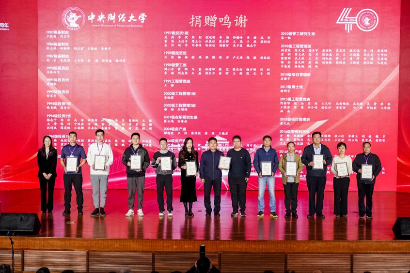 jinnianhui金年会登录入口校友与基金工作办公室主任、教育基金会秘书长程丽芳为捐赠班级和团体代表颁发捐赠证书。在建院40周年之际,校友们向学院踊跃捐赠,管工人爱的奉献薪火相传。