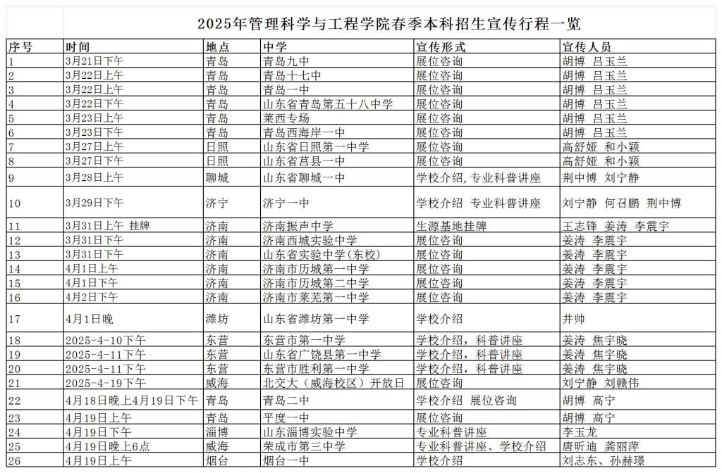 附:春季招生宣传行程一览表