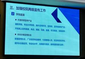 学院高度重视招生宣传工作,制定和规划招生宣传工作的相关政策和工作方案,成立本科招生宣传工作组,院长刘志东和院党委书记姜涛任组长,党委副书记贾传亮任副组长,各系、相关科室积极参与、通力协作。通过招募优化宣传队伍、开展专业线上直播、多渠道开展招生咨询服务等活动,全方位、立体化地展示了我校本科招生专业的办学实力、学科优势和特色,积极吸引优秀生源报考。