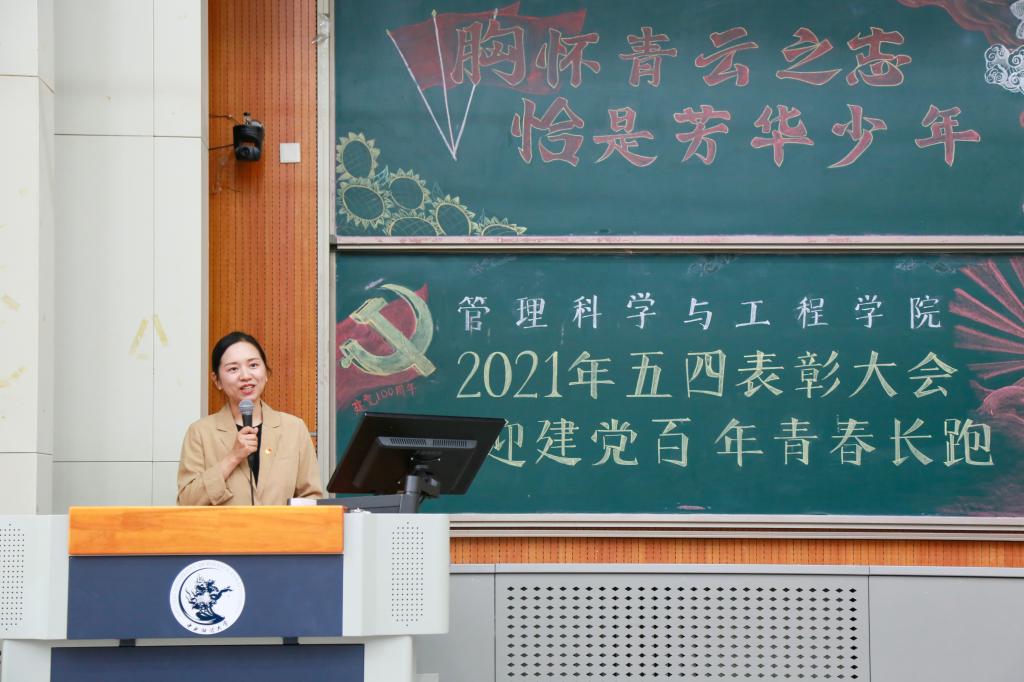 姜涛在表彰大会上作了情真意切的讲话,她代表学院党委向受到表彰的先进集体和个人表达了衷心祝贺,向全院青年朋友们致以节日的祝福。