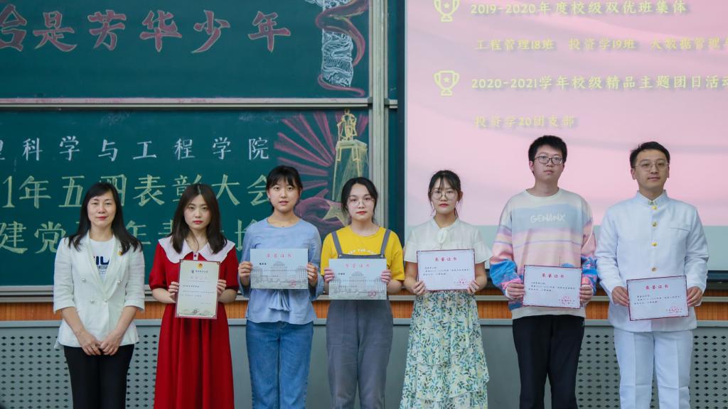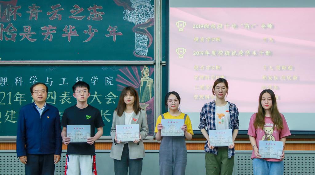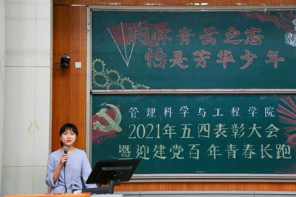 在五四青年节之际,为深化学习贯彻习近平总书记在纪念五四运动100周年大会上的重要讲话精神,学习传承五四精神,加强青年学生党史学习教育和社会主义核心价值观培育,展现学院青年风貌,5月12日下午两点,“胸怀青云之志,恰是芳华少年”jinnianhui金年会登录入口2021年五四表彰大会暨迎建党百年青春长跑活动在学院4号楼107隆重举行。学院党委书记姜涛、院长刘志东、党委副书记贾传亮、学院党建与业务创新部主任、学生工作办公室主任、17级本科生辅导员薄璐、18级本科生辅导员马冰出席大会。大会由学院团委书记高舒娅主持。