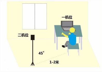 (6.3)硬件要求:考生“双机位”要求。初试笔试、复试面试均需要准备双机位。“第一机位”采集考生音、视频源(考生正前方);“第二机位”采集考生“第一机位”显示器及考生所处环境的整体情况(远端)。“第二机位”须可自由移动,考试过程中考生须根据考官指令随时变换机位位置。“双机位”涉及的硬件设备的电脑桌面以及手机不得存放考试相关的电子资料。考生需要准备可以支撑“双机位”运行的硬件,即需要两部带摄像头的设备及附件,包括笔记本电脑、手机、手机支架、摄像头、麦克风和音响等。第一机位(建议电脑端)从正面拍摄,放置在距离本人30cm处,确保拍摄到本人上半身、表情、眼神、身后环境;第二机位(建议手机端或者电脑端)从考生侧后方45°距离本人30-80cm处拍摄,确保从考生身后完整拍摄到考生全身、主机位完整屏幕。手机须在考试期间切断电话、短信服务, 屏蔽或拦截所有来电,关闭除考试软件外的一切可影响考试的自启动app(如QQ等语音软件)。用于网络远程考试的手机原则上不能是考生联系方式的手机号码和应急手机号码使用的手机。副机位在考试期间仅开启视频,须关闭麦克风,确保仅主机位传递音频,防止造成混响,同时将设备调整成静音,防止副机位意外放音干扰考生考试。 如遇主机位故障,考生须立即打开副机位音频,通过副机位完成考试。手机在考试期间应保持电量充足,同时提前充值,防止因话费不足被移动信号供应商切断服务。