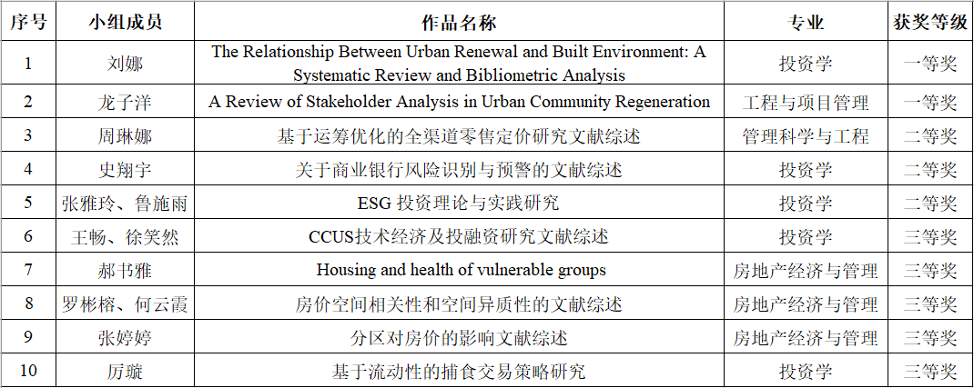 6月2日,终审答辩会拉开序幕。学院投资系郭建老师、城市与房地产管理系王优容老师、工程管理系高然老师、管理科学系刘赫老师,担任本场答辩会评委。答辩共分为四个环节:各组展示、评委提问、评委点评和大赛结果公布。首先,由各组参赛选手根据抽签顺序进行限时7分钟的现场展示,然后由评审老师针对文献综述和展示环节内容进行提问,参赛选手逐一进行答辩,评审老师依据评审细则对各组论文进行打分。答辩环节,评审老师们从文献综述的内容、格式规范、引用文献的科学与代表性、全面性以及研究问题的前沿性与重要性等方面与选手进行了深入细致的交流,并对文献综述的写作提出了专业的意见和建议。